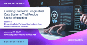This session, Expanding Data Partnerships: Insights from Health & Human Services, examines how states are expanding SLDS to include data from health and human services agencies and what education leaders can learn from those efforts. As states seek to better support educational attainment and child wellbeing, cross-sector data partnerships are becoming increasingly essential.